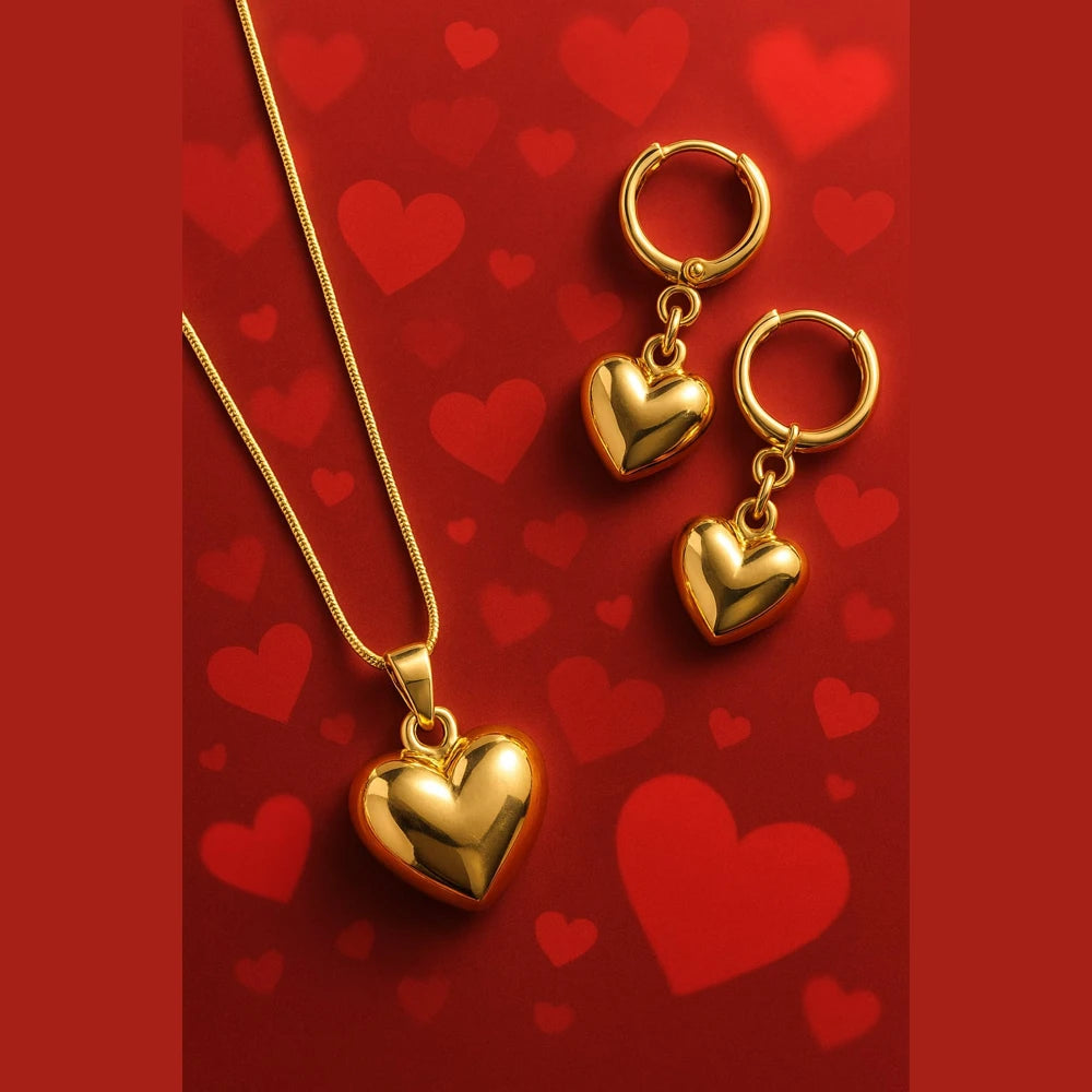 Luxury Gold Heart Pendant & Earrings Set – RealGold Look Premium Jewellery