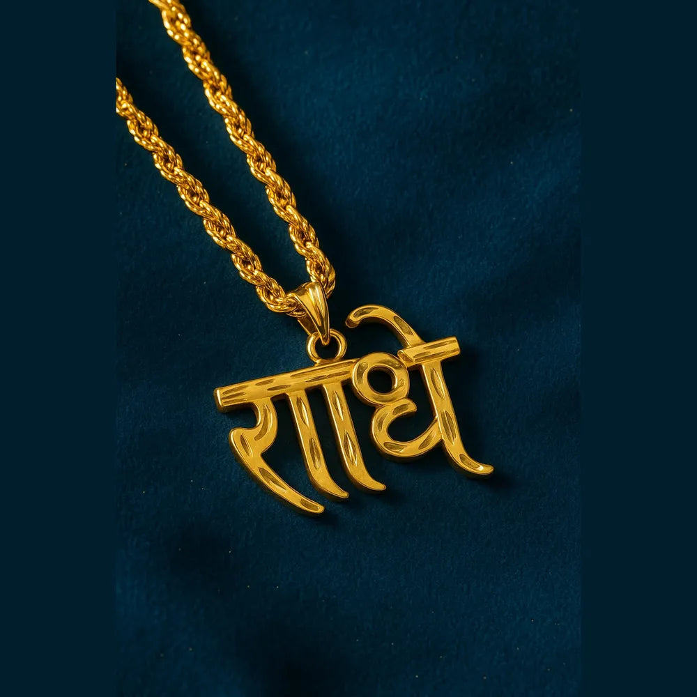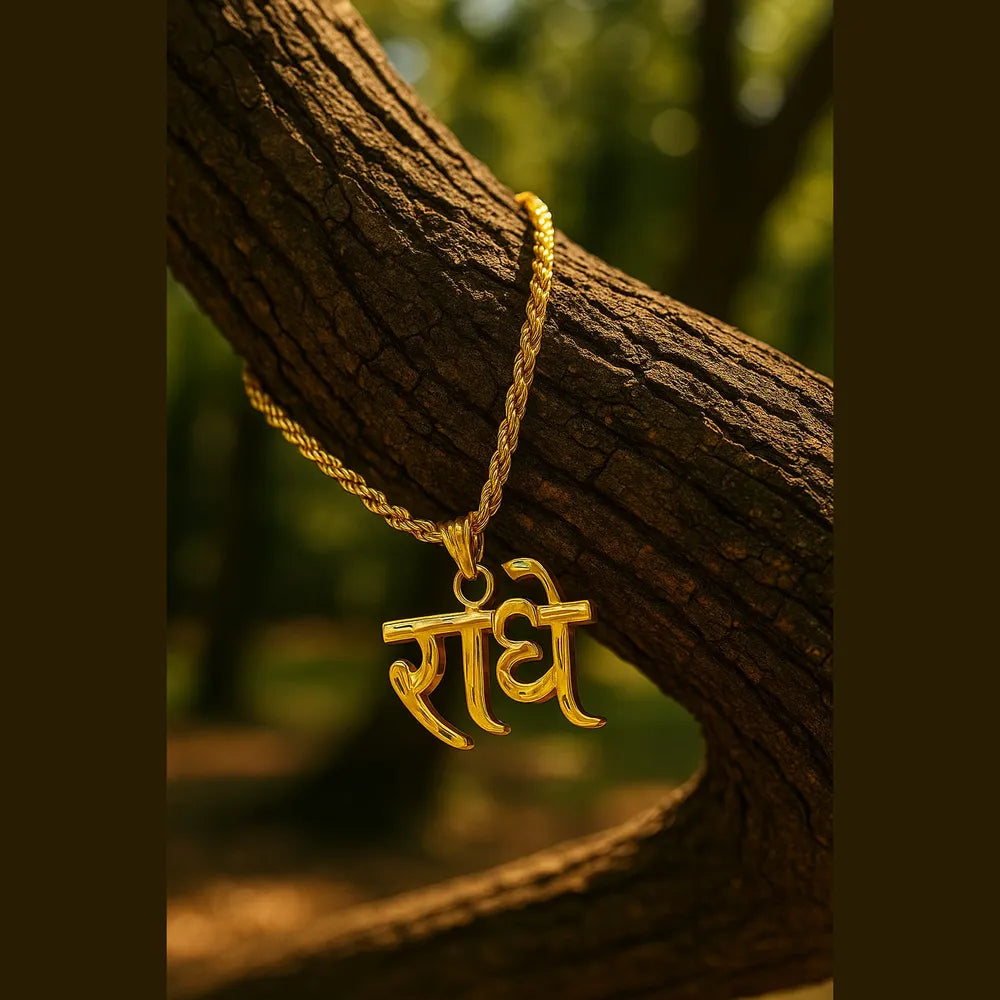 Radhe Naam Gold-Plated Locket with Rope Chain – Pure Handmade