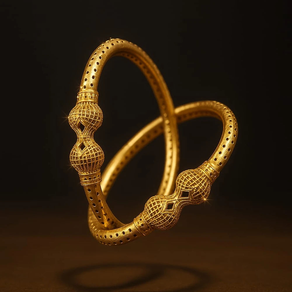 Royal Carved One Gram Gold Bridal Kada – Set of 2