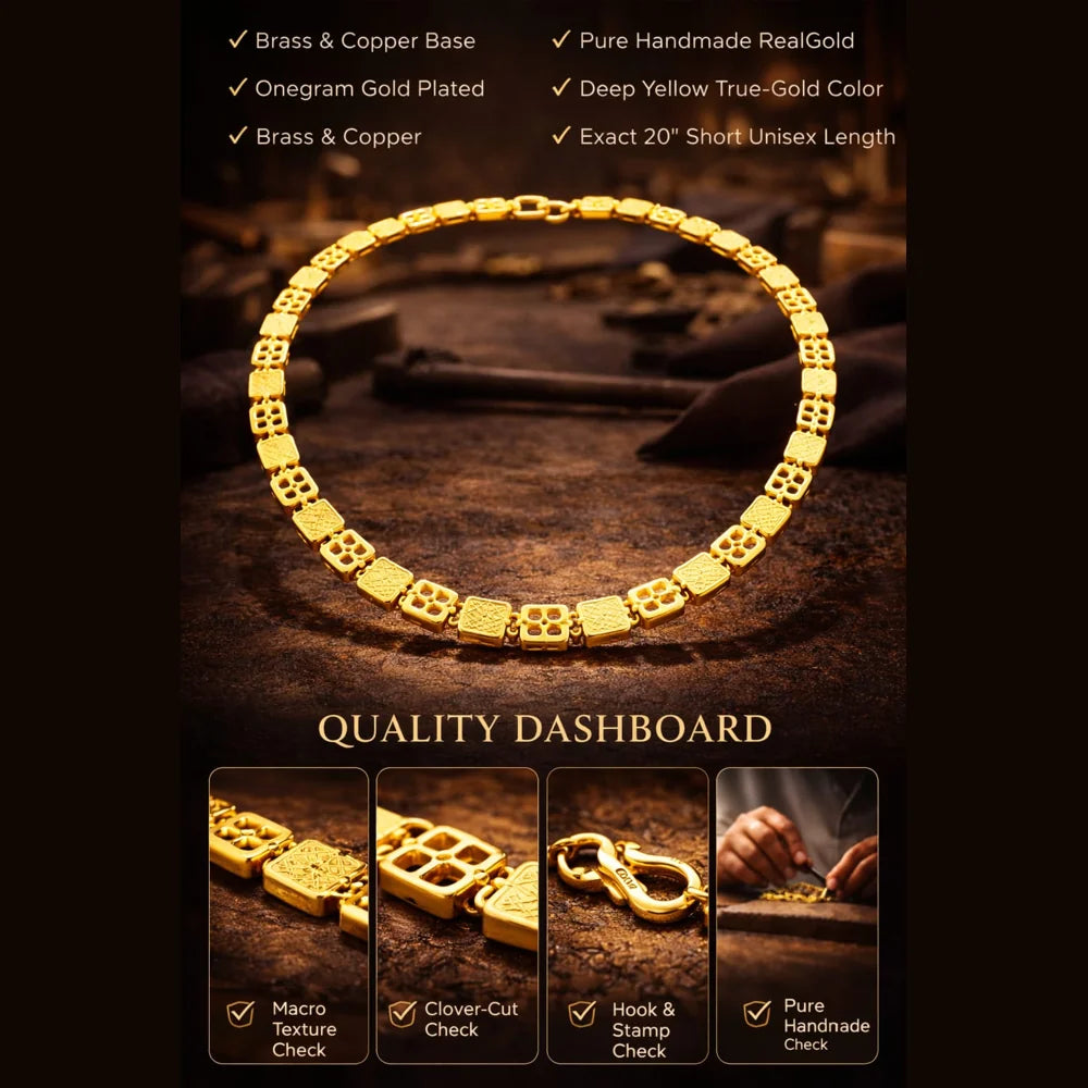 Elevate your everyday style with this finely crafted clover-cut necklace from ZHome. Designed with precision square links and a rich gold-tone finish, this unisex chain delivers a premium look without heavy weight.
