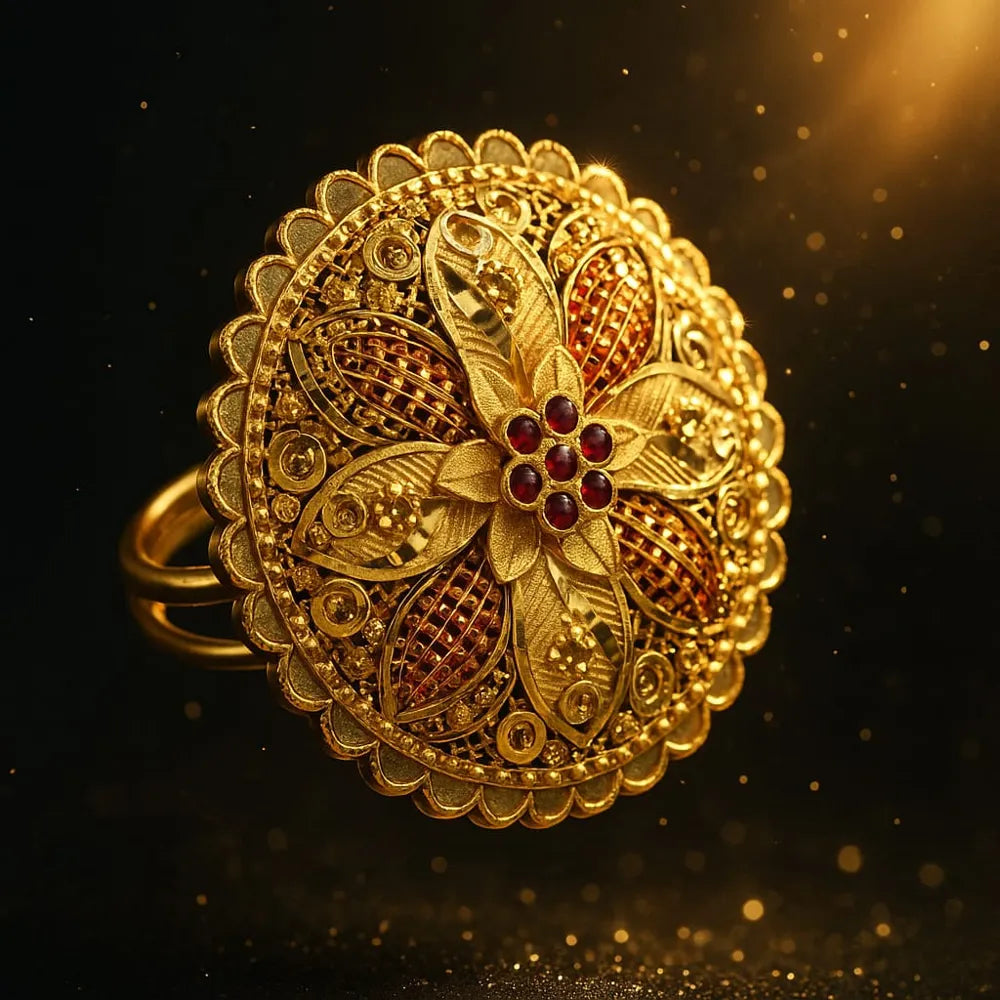 Experience timeless elegance with our One Gram Gold Jodha Round Ring, crafted to add royal charm to your everyday and festive looks.
