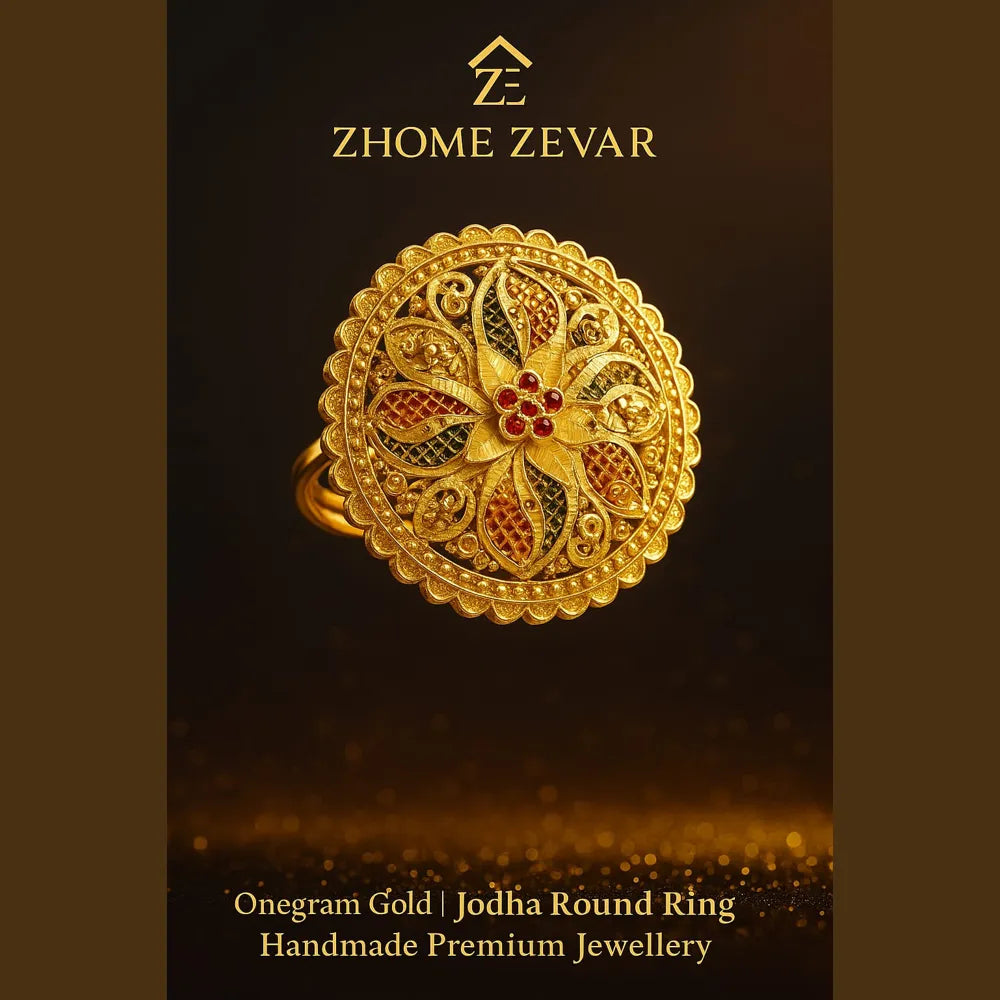 One Gram Gold Jodha Round Ring – Adjustable Free Size | Premium Handmade Jewellery